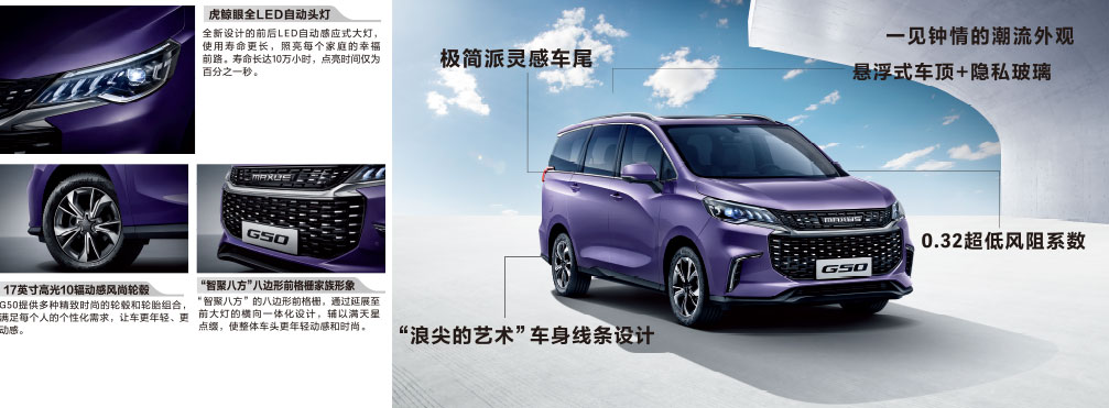 2月28日,上汽大通MAXUS全能家旅MPV G50全系惊艳上市, 年轻前卫的造型,舒适宽敞的空间,灵活自选的C2B大规模个性化智能定制模式,稳健流畅的动力输出,智能全面的安全系统,说它是2019年最值得入手的MPV也毫不为过…查看详情 >>